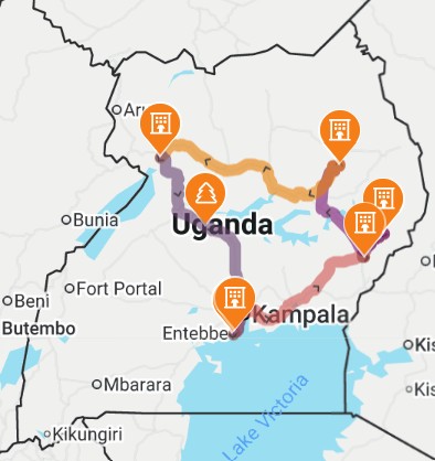 Reisen fortsetter nordover til Murchison Falls nasjonalpark, en kjøretur på 8–9 timer, hvor du kan nyte utsikten over landsbyer, veikantsmarkeder, gårder, skolebarn i sine fargerike uniformer, fiskere som kaster nett, gjetere som driver sine flokker av storfe og geiter, og mye mer. Når du nærmer deg nasjonalparken, er det gode sjanser for å se elefanter, giraffer, antiloper og andre dyr lenge før du kommer inn gjennom parkportene!