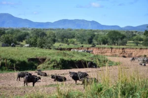 Travelling north from Kobulin to Kidepo Valley National Park takes you through shifting landscapes with vast plains dotted with volcanic hills and mountains. Along the way, your path will intersect with Karimojong herdsmen guiding their large herds of cattle in search of water and grazing grounds, a timeless scene that echoes through generations. Arriving in Kidepo Valley National Park, you’ll see lots of big game even on your way to the lodge.